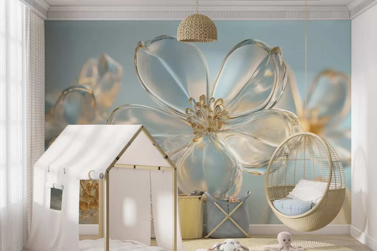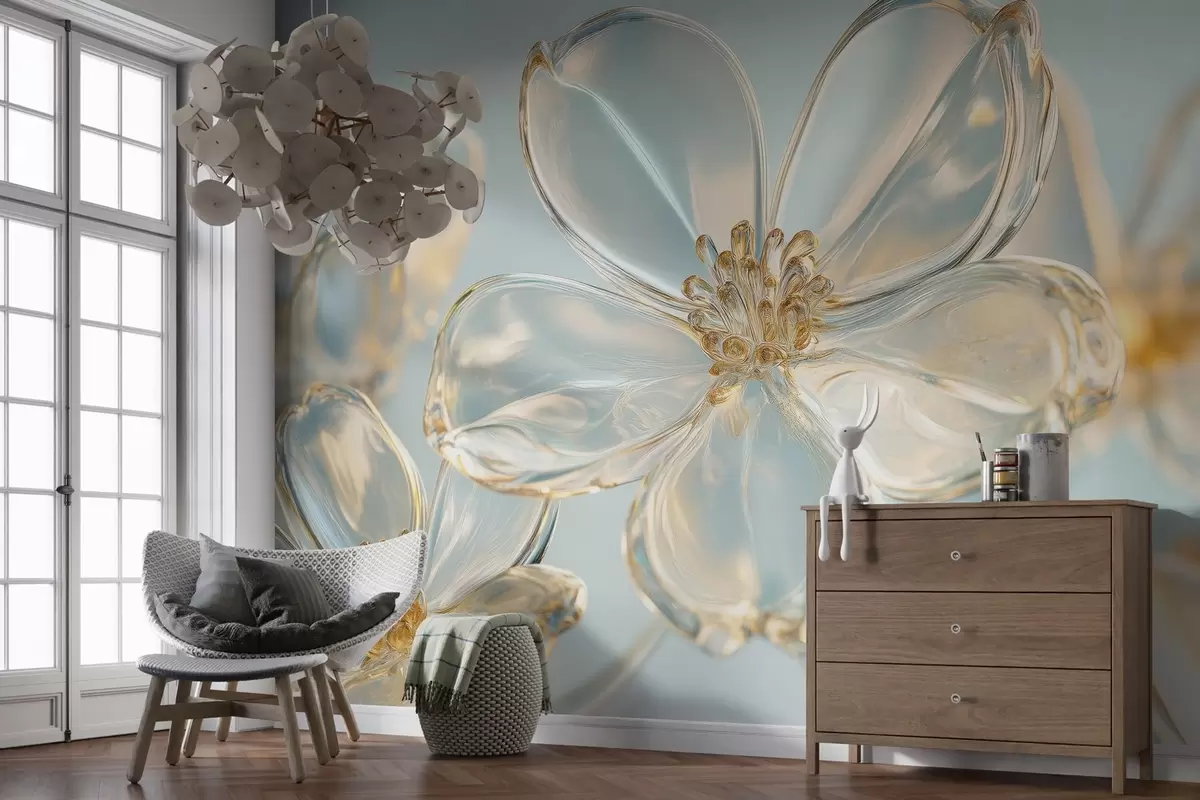 Fotobehang grote glazen bloemen in blauwe tinten N° w02521