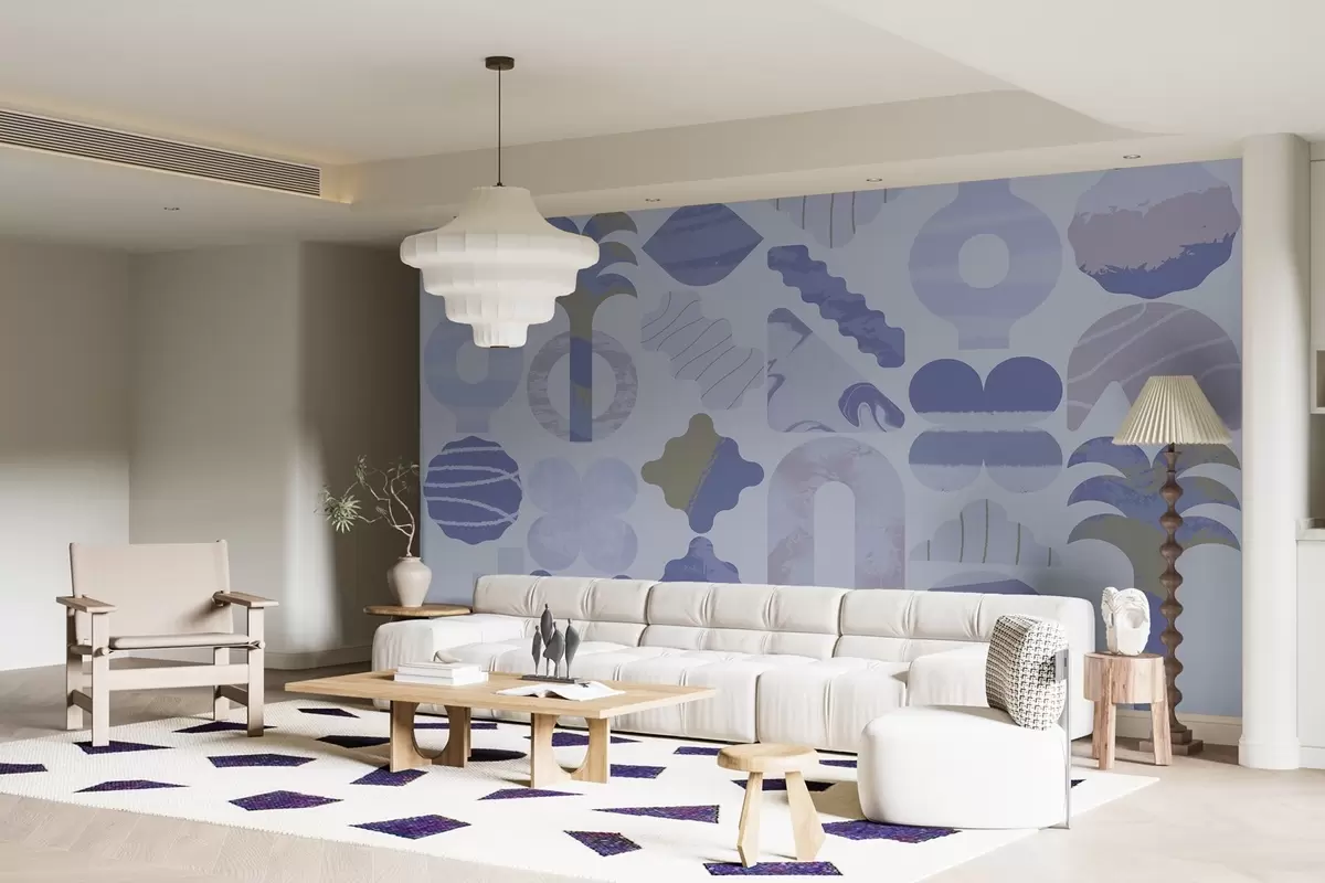 Fotobehang verschillende interessante vormen, moderne geometrie in blauwe tinten N° w02550v1