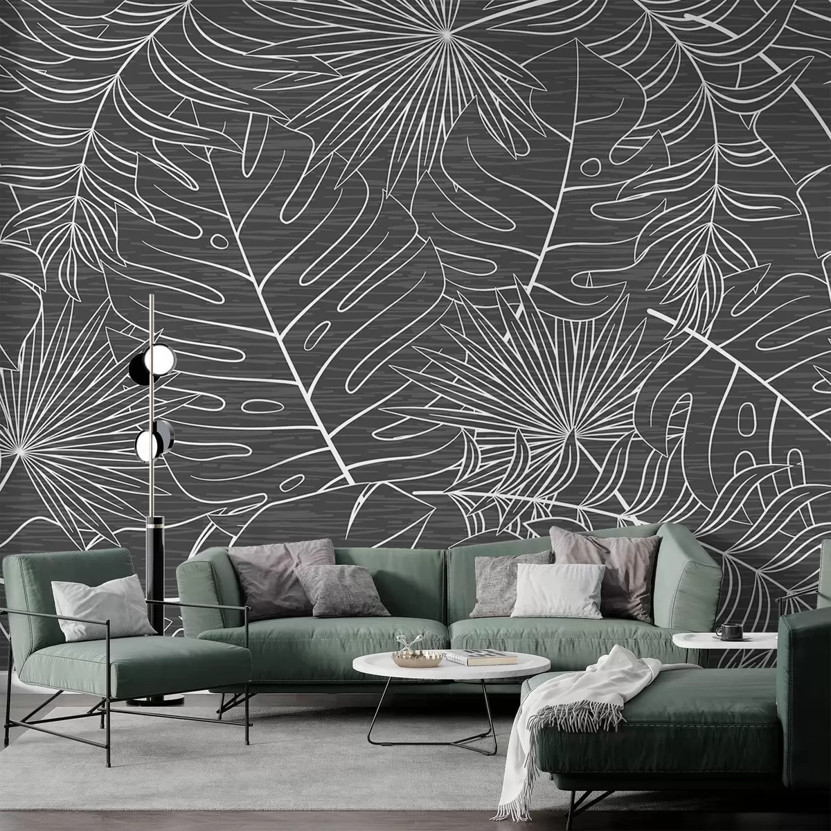 Fotobehang Tropische bladeren in grafische stijl N° w02695