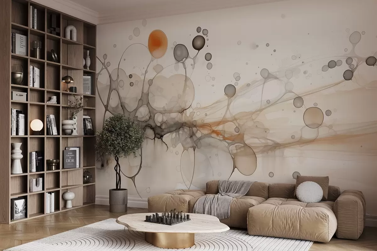 Fotobehang Abstractie, minimalisme, inktkunst, vloeiend, beige en grijze kleuren N° w02750