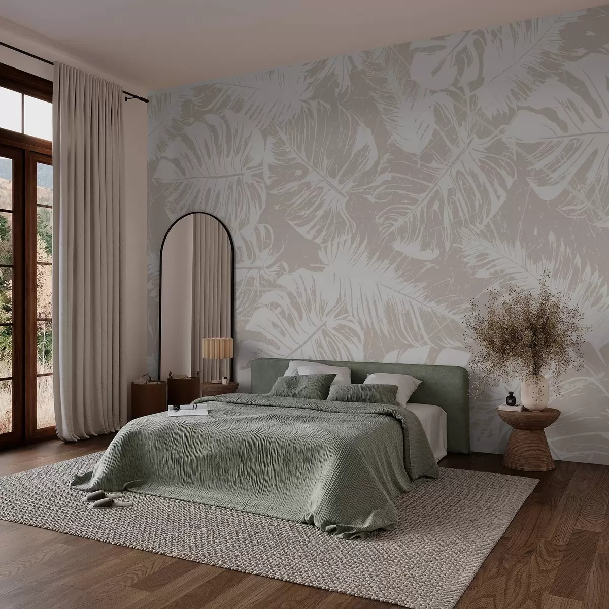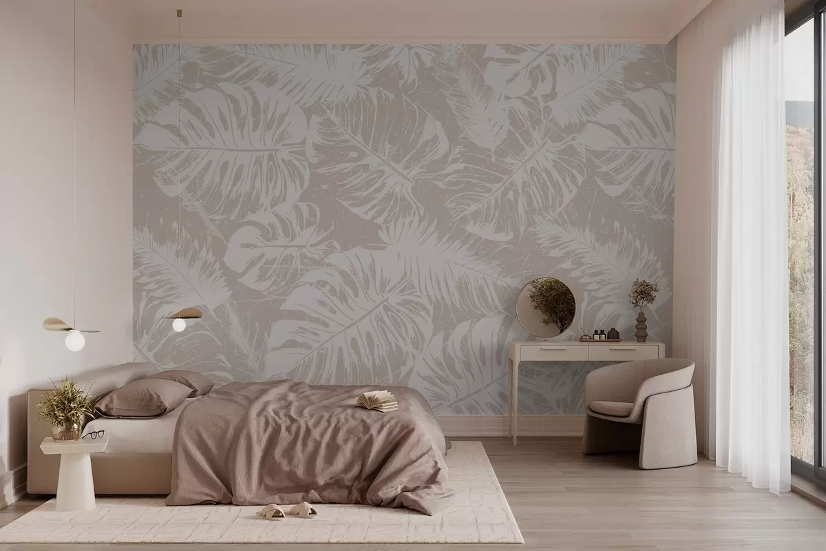 Fotobehang Witte bladsilhouetten op een gestructureerde achtergrond N° w02895v1