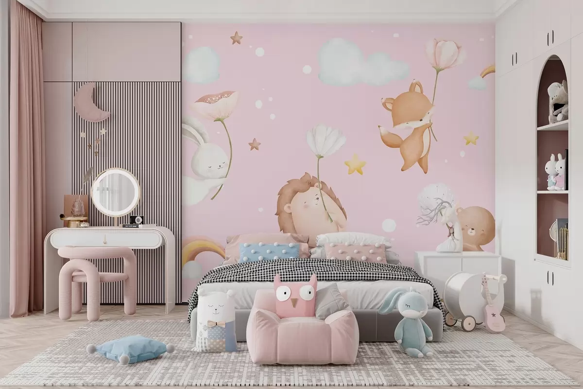 Fotobehang Dieren met bloemen op roze achtergrond N° w02897