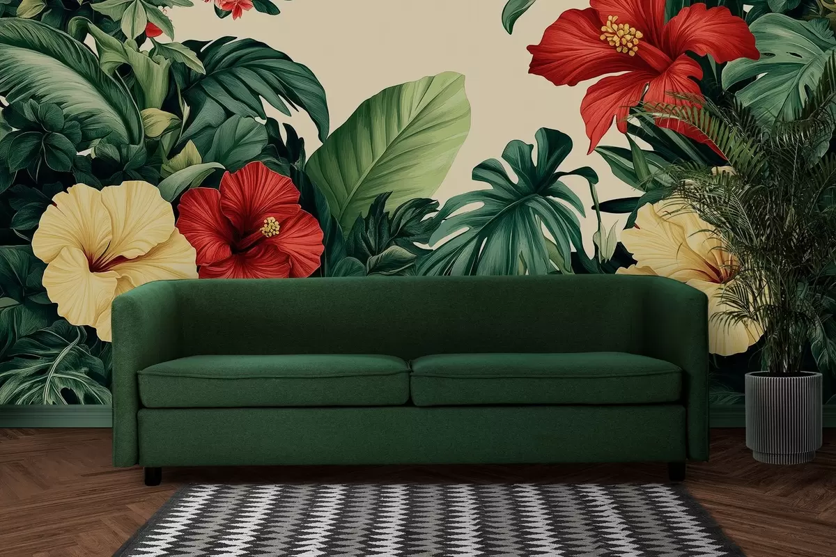 Fotobehang Tropische tuin met bloemen N° w03021