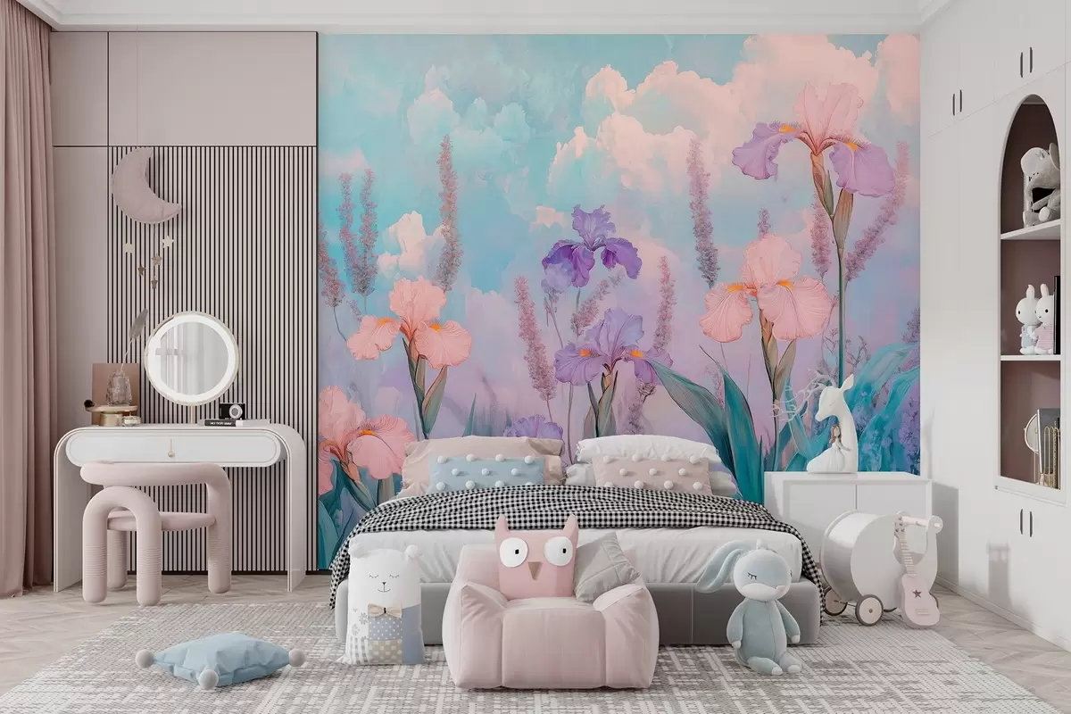 Fotobehang Oli stijl tekening bloemen, zomer weide, bloemen N° w03154