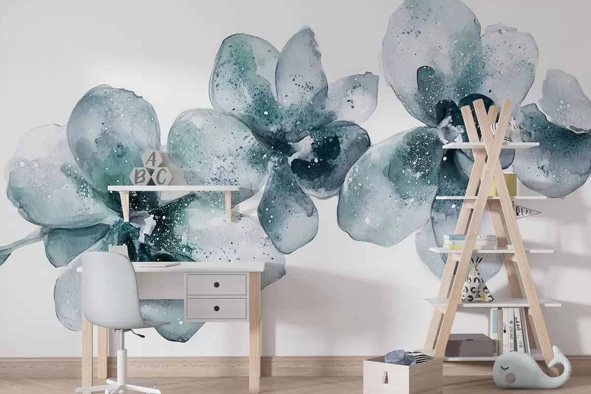 Fotobehang Aquarel stijl orchidee bloemen, aquamarijn kleuren N° w03163v1