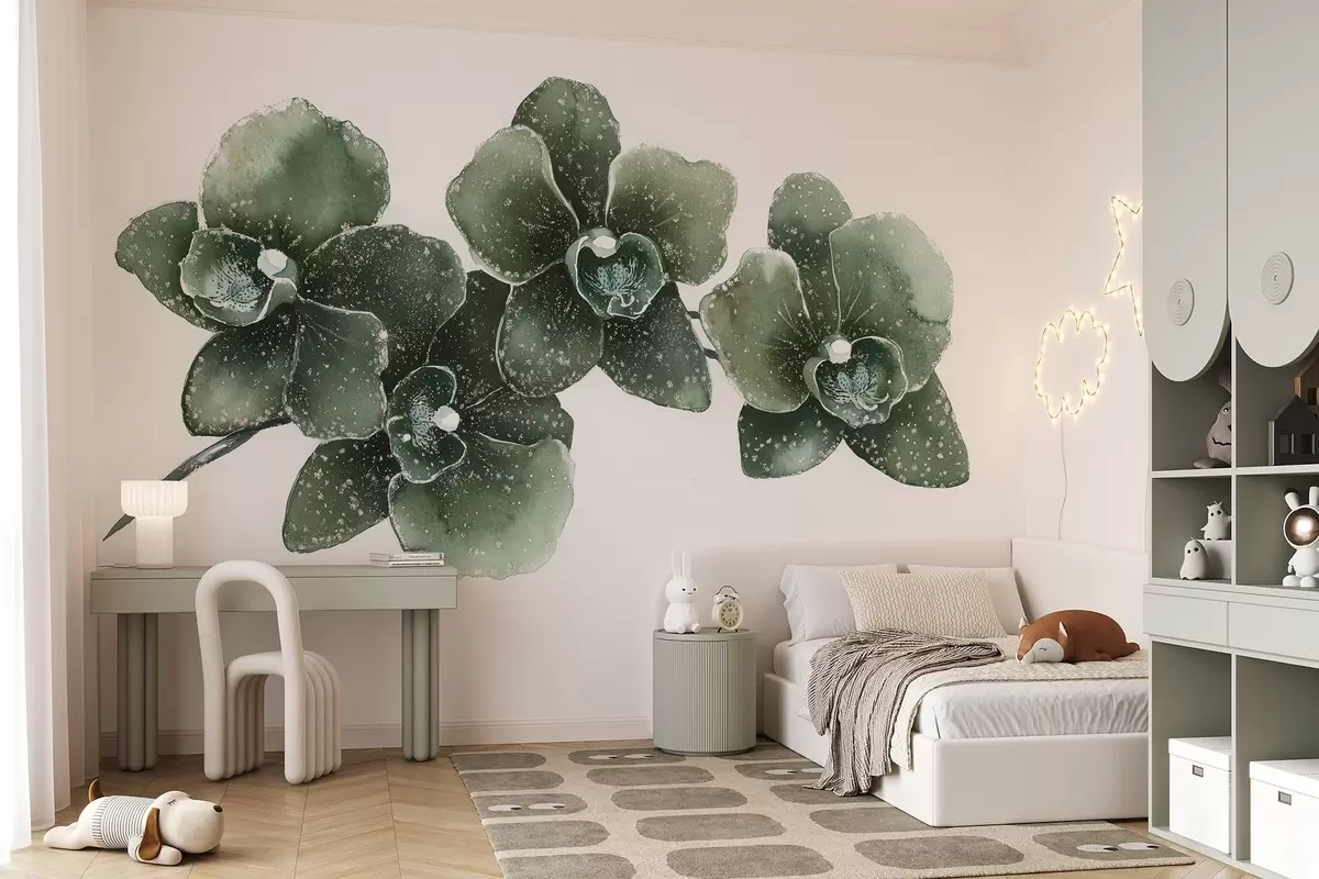 Fotobehang Orhid bloemtak, aquarel stijl, bloemig, groene kleuren N° w03165v1