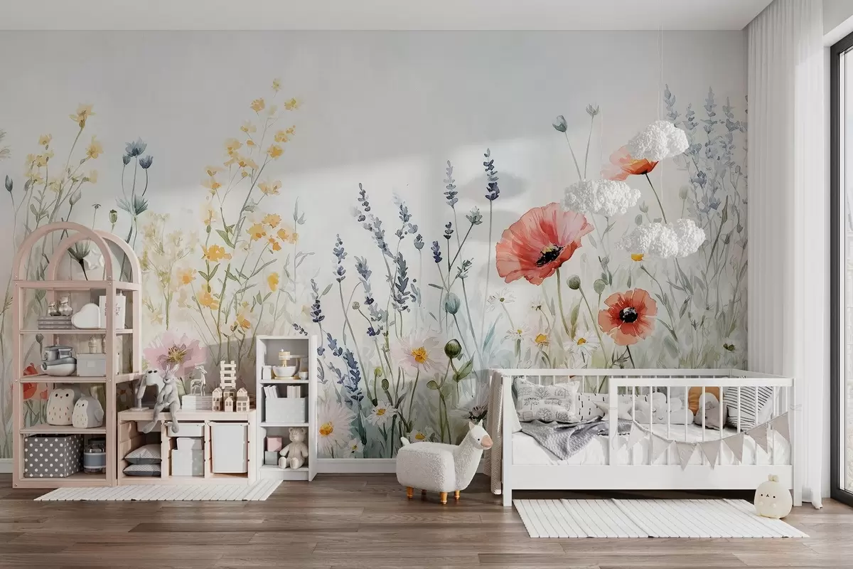 Fotobehang wilde bloemen en klaprozen in de techniek van streken N° w03281