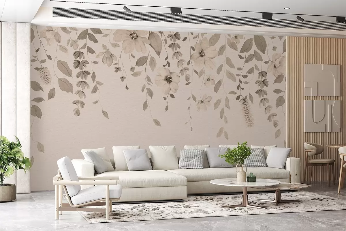 Fotobehang Hangende aquarel bloemen en bladeren N° w03315v4