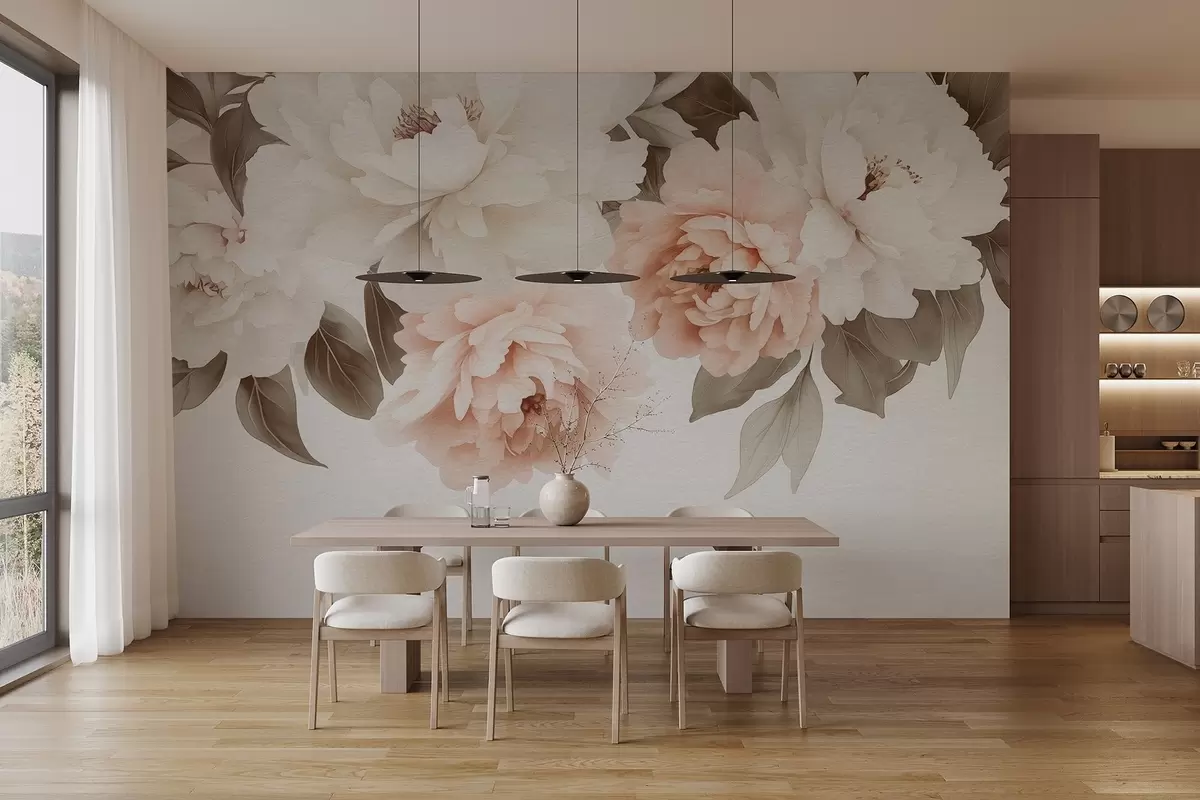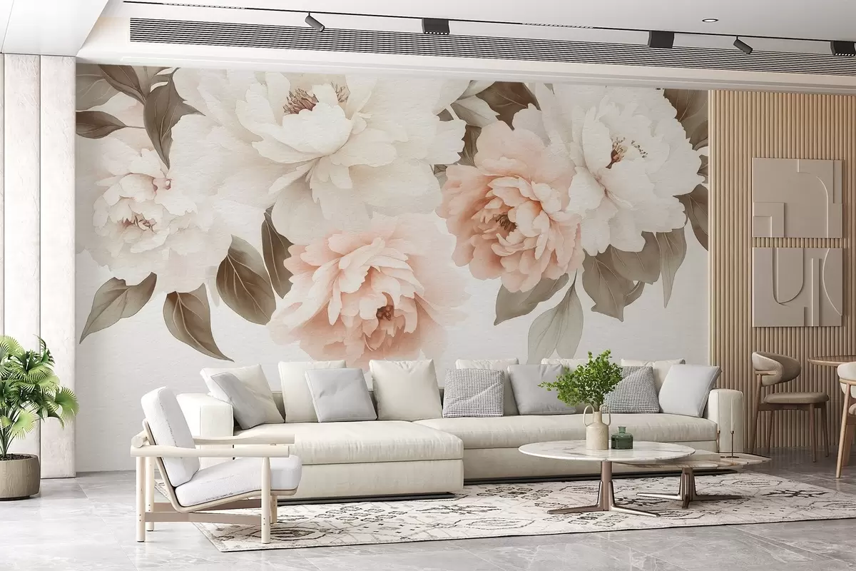 Fotobehang Fijne aquarel vintage pioenrozen N° w03317