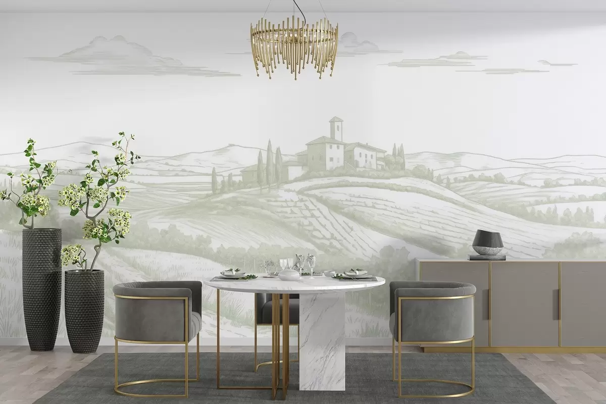 Fotobehang Toscane landschappen, Italië, wijngaarden, natuur, oud kasteel, groene kleuren N° w03349v2