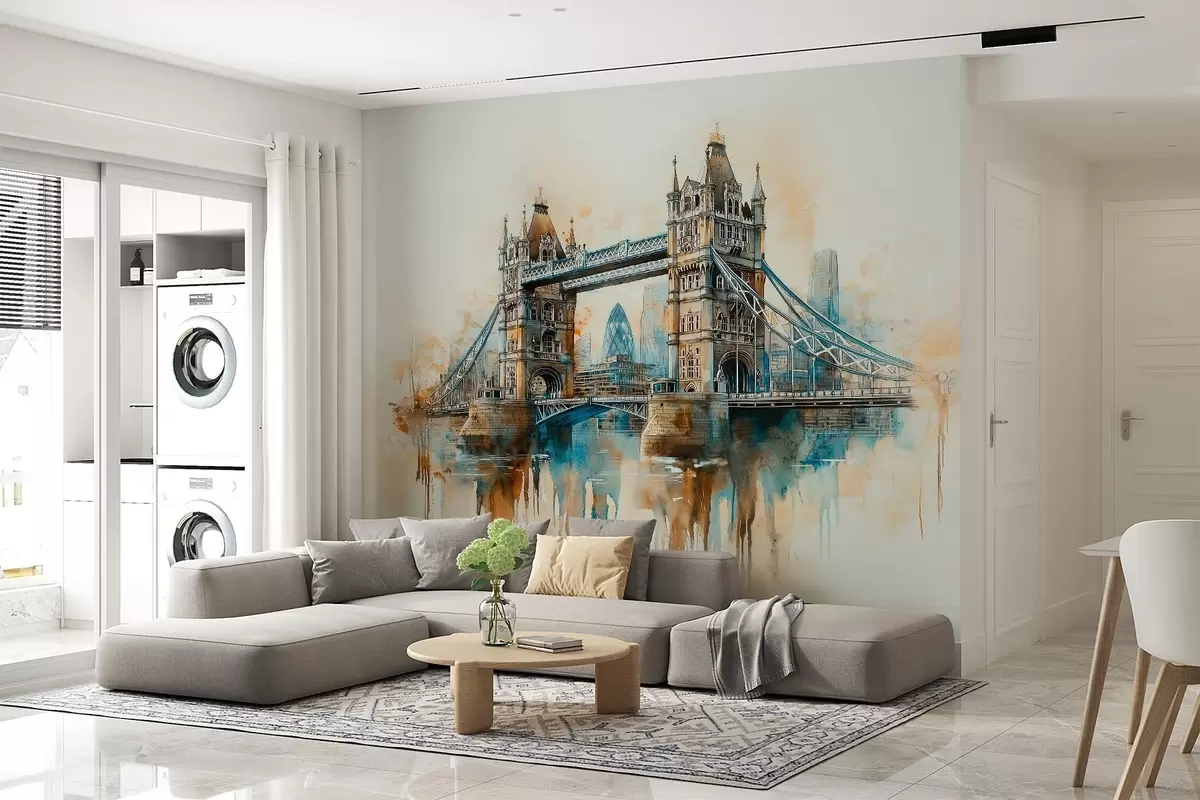 Fotobehang Tower Bridge in aquareltechniek N° w03396