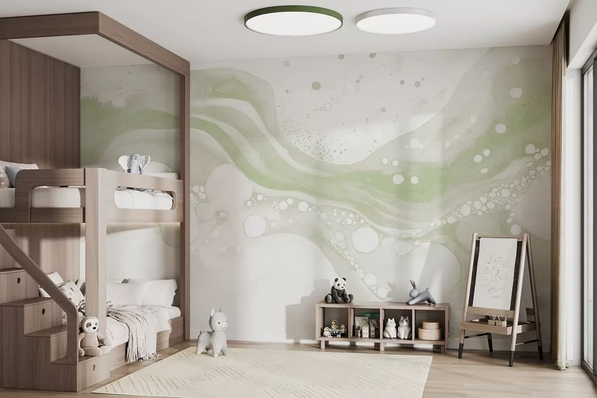 Fotobehang Aquarel stijl abstractie tekening, vloeiende kunst, groene kleur N° w03403v2