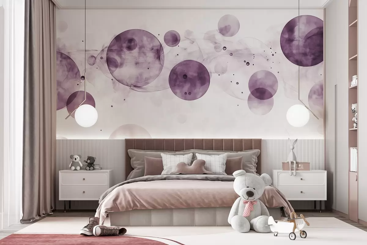 Fotobehang Cirkels in aquarelstijl, abstractie, etherisch, vloeiende kunst, paarse kleuren N° w03405v2