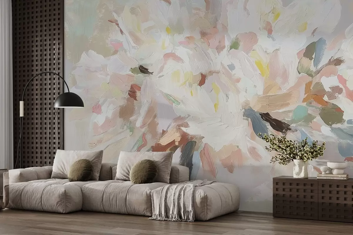 Fotobehang Gevoelige abstracte bloemen in olieverfstijl N° w03579