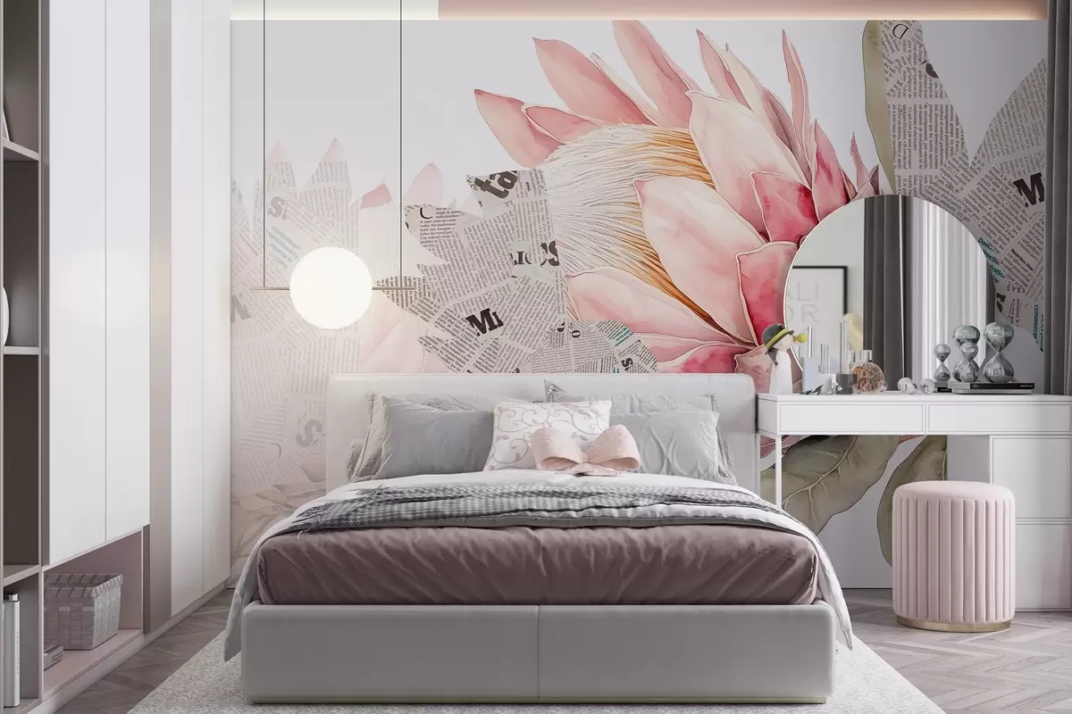 Fotobehang Protea bloemen, krantenkunst, bloemen, tropisch, natuurlijke kleuren N° w03667
