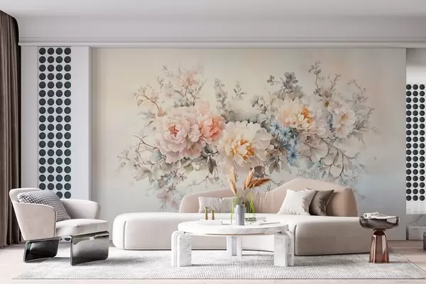 Fotobehang delicate bloemen in aquarelstijl in pasteltinten roze, beige en blauw N° w03724