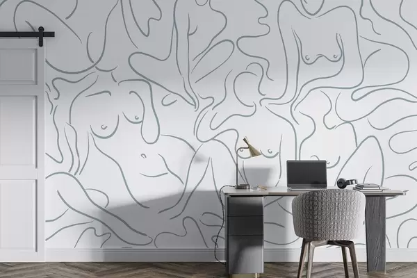 Fotobehang Lijntekening anatomische silhouetten, abstractie, blauwe kleur N° w03755v1