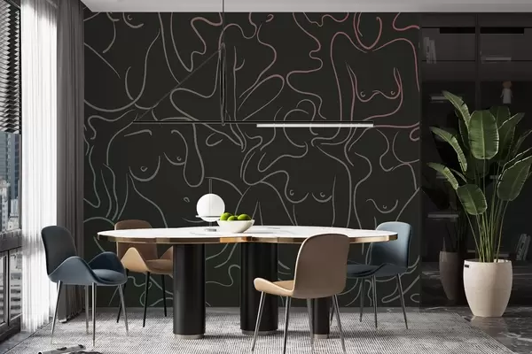 Fotobehang Lijntekening anatomische silhouetten, abstractie, donkere achtergrond N° w03755v2
