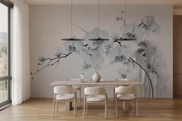 Fotobehang Japanse aquarel orchideeën op een lichte achtergrond N° w03795