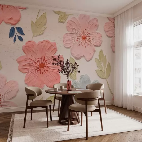 Fotobehang Reliëfbloemen in bas-reliëfstijl met roze tinten N° w03797