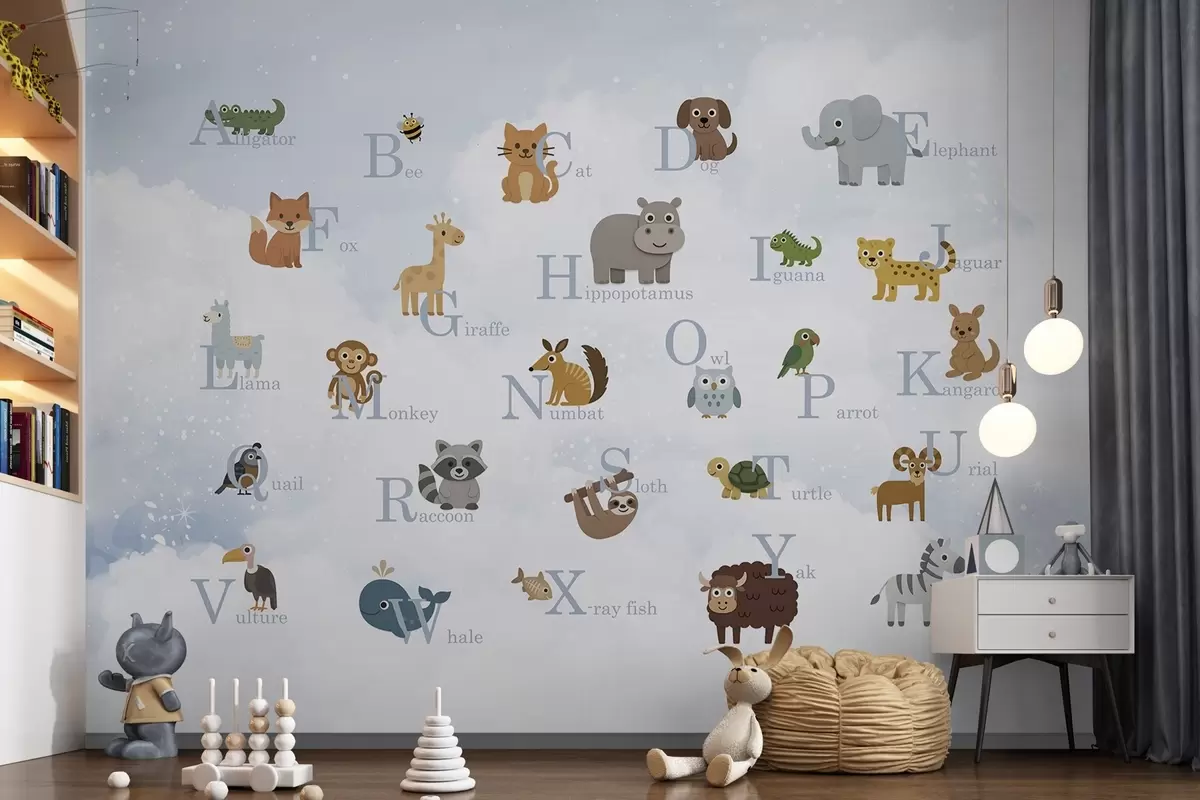 Fotobehang Alfabet met blauwe letters op de hemelachtergrond N° w03810v1