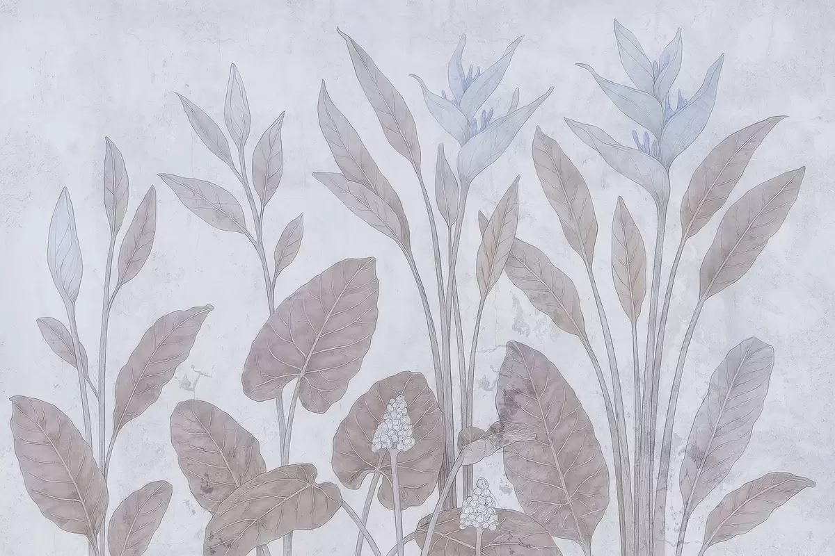 Fotobehang Grungebladeren op een oude muur N° w03823v1