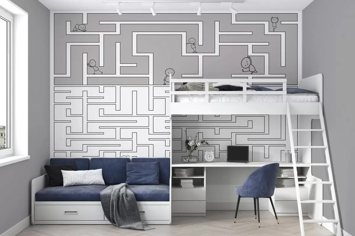 Fotobehang Labyrint in grijs en wit N° w03873v1