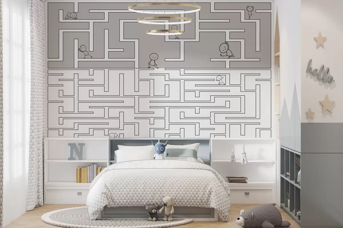 Fotobehang Labyrint in lichtgrijs en wit N° w03873v5