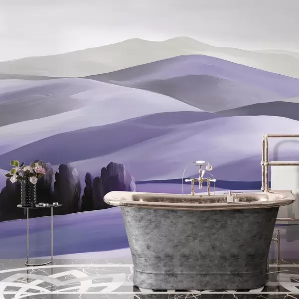 Fotobehang Landschappen met bomen, Toscane, paarse kleuren, olieverfstijl N° w03880v3