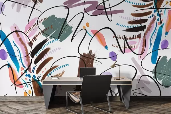Fotobehang Inktletters, kalligrafie, penseelstreken, levendige kleuren, abstractie N° w03912