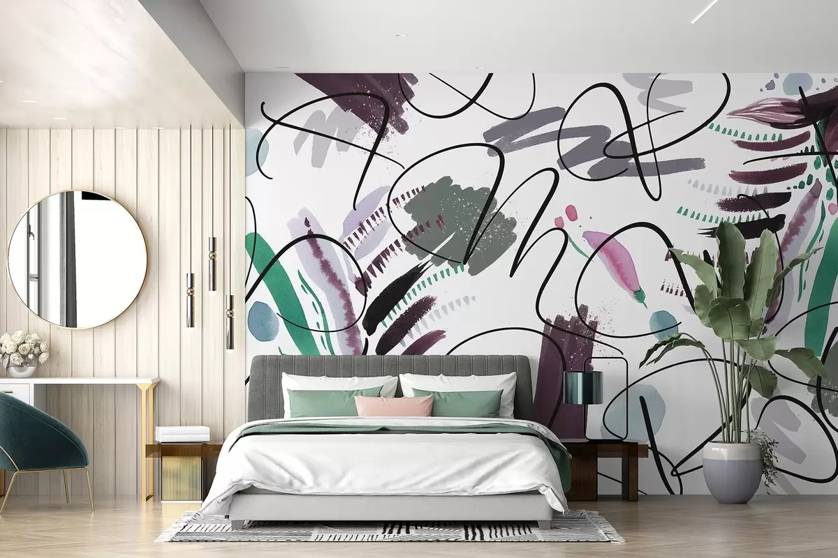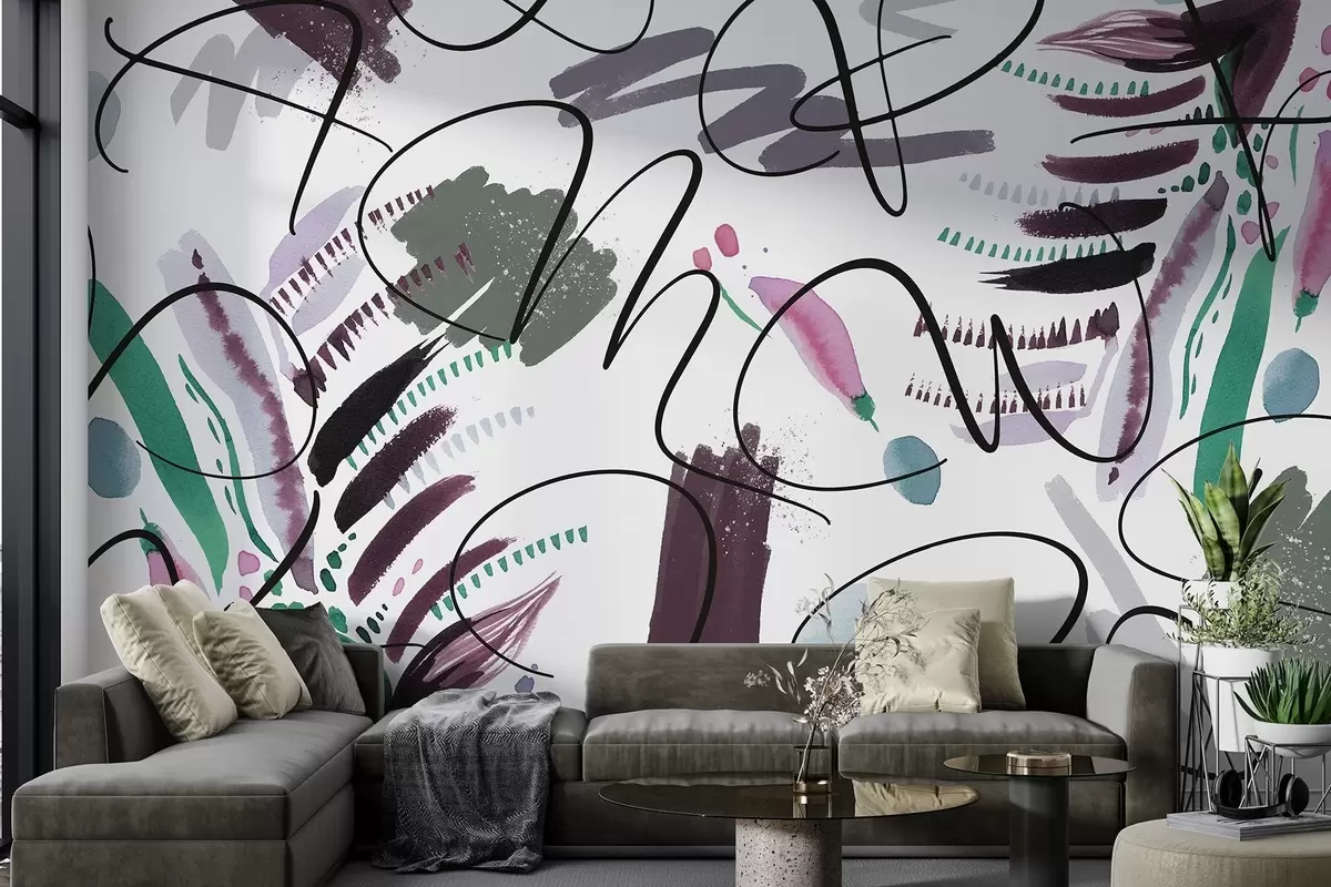 Fotobehang Inktletters, kalligrafie, penseelstreken, pastelkleuren, abstractie N° w03912v1