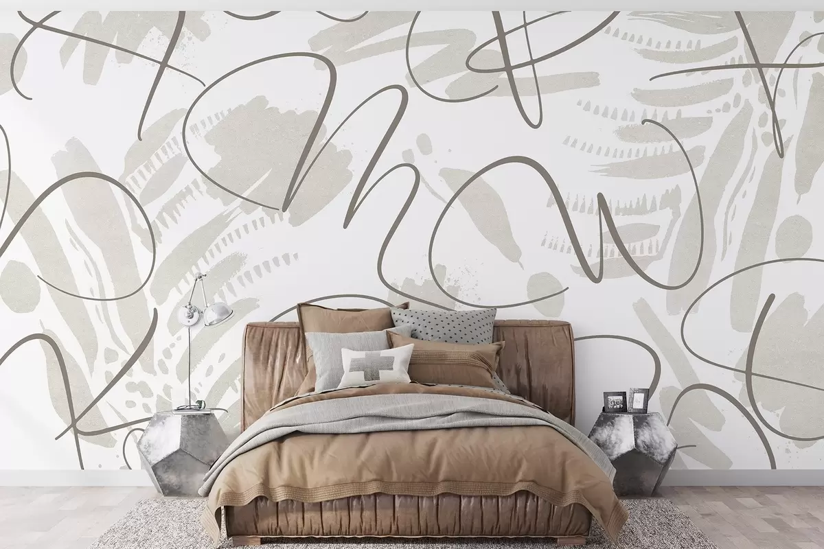 Fotobehang Kalligrafische abstractie met letters, penseelstreken, beige kleur N° w03913
