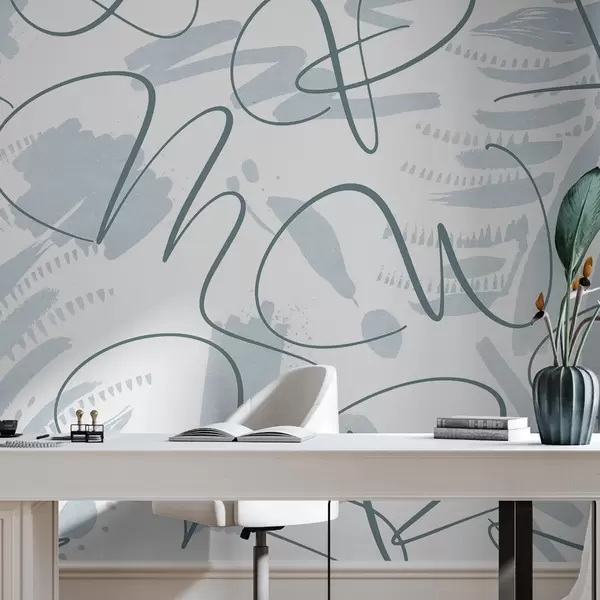 Fotobehang Kalligrafische abstractie met letters, penseelstreken, blauwe kleur N° w03913v1