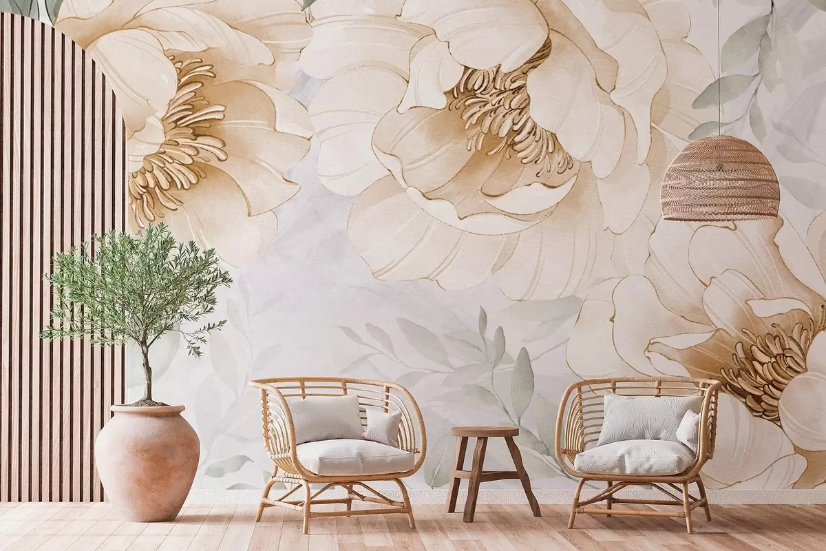 Fotobehang Gele pioenrozen imitatie aquarel N° w03932v1