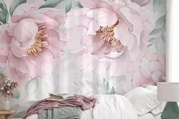 Fotobehang Roze pioenrozen imitatie aquarel N° w03932v2