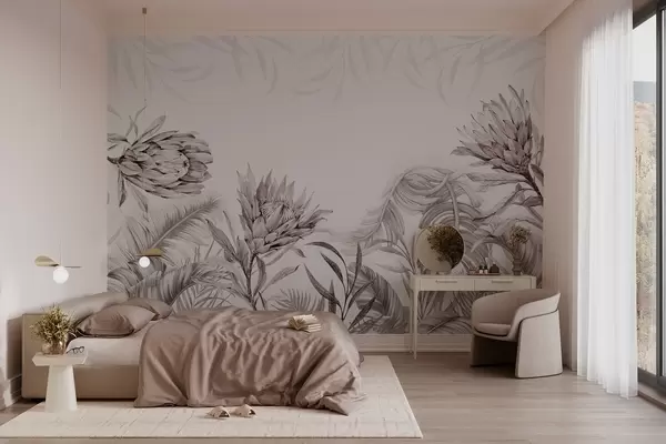 Fotobehang Protea tussen tropische bladeren N° w03952v1