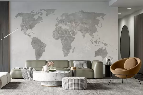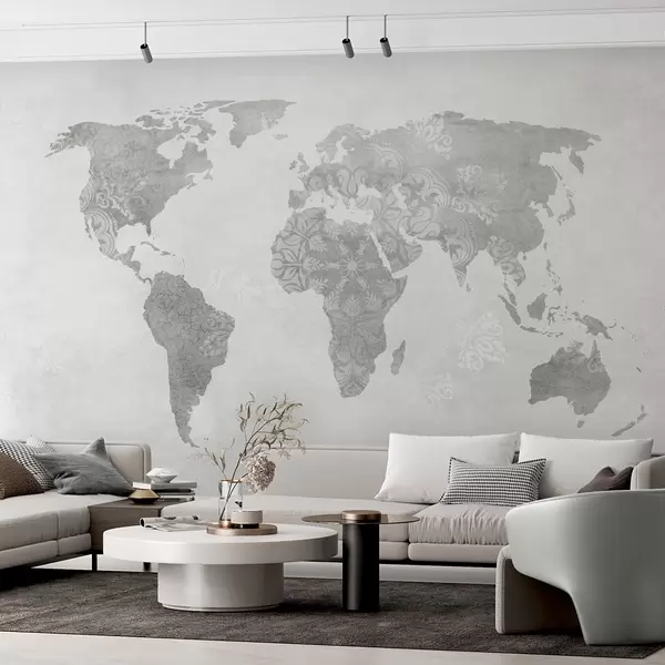 Fotobehang Wereldkaart met patroon, monochrome tinten N° w03954v1