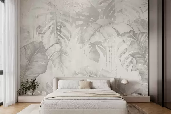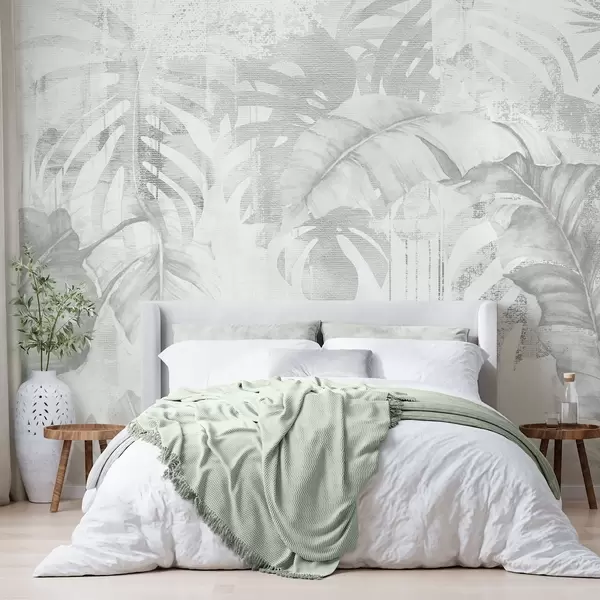 Fotobehang Tropische bladeren in grungestijl, monochrome tinten N° w03956v1