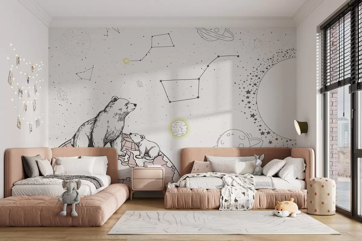 Fotobehang Beren en sterren op bruine achtergrond, astronomiethema N° w04002v2