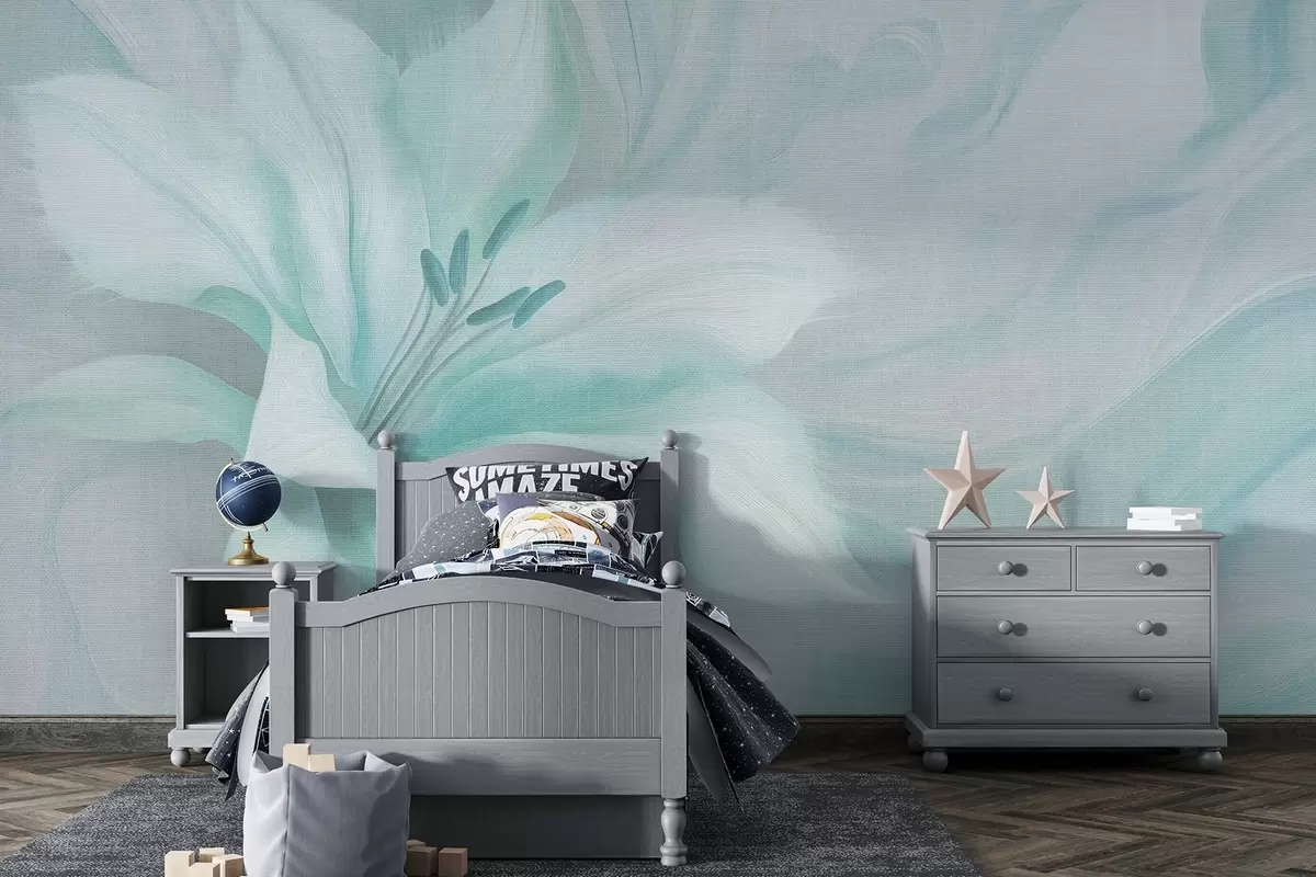 Fotobehang Leliebloem vloeiende abstractie, bloemig, aquamarijne kleuren N° w04006v3