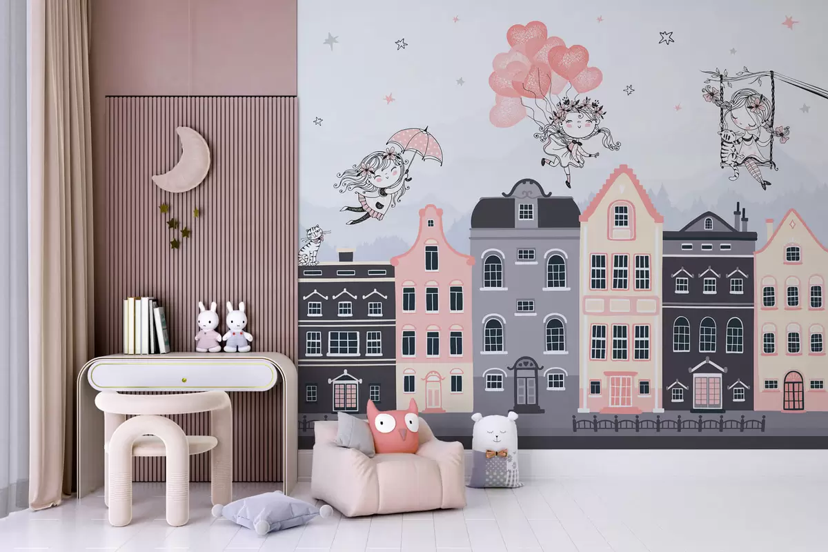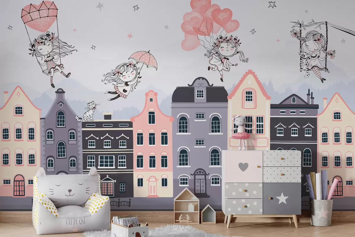 Fotobehang Stadsgezicht met schattige meisjes N° w04014