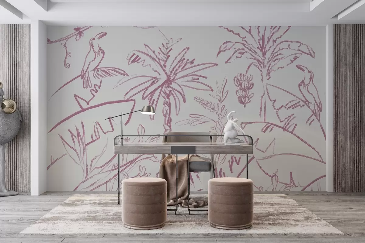 Fotobehang Tropische lijnen in roze, tropische planten, bananen N° w04020v2