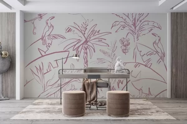 Fotobehang Tropische lijnen in roze, tropische planten, bananen N° w04020v2