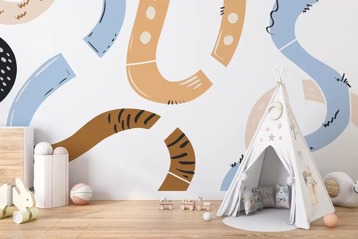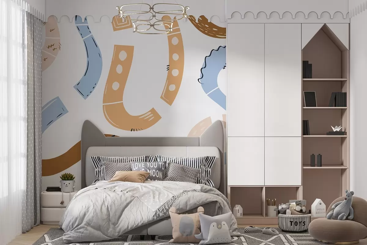 Fotobehang Abstracte tekeningen, jeugd, krabbels, bruin, blauw, roze N° w04066