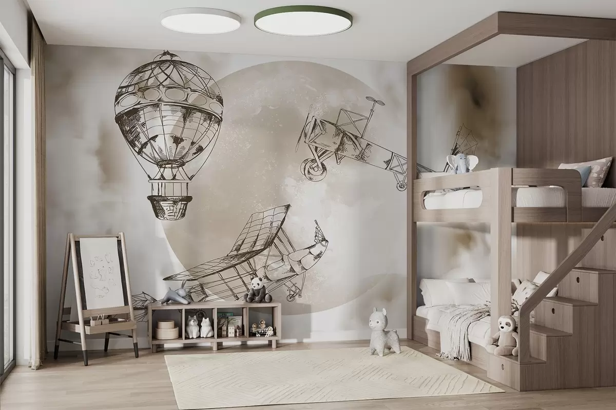 Fotobehang Retro vliegtuigen tegen de achtergrond van de maan en wolken N° w04085v1