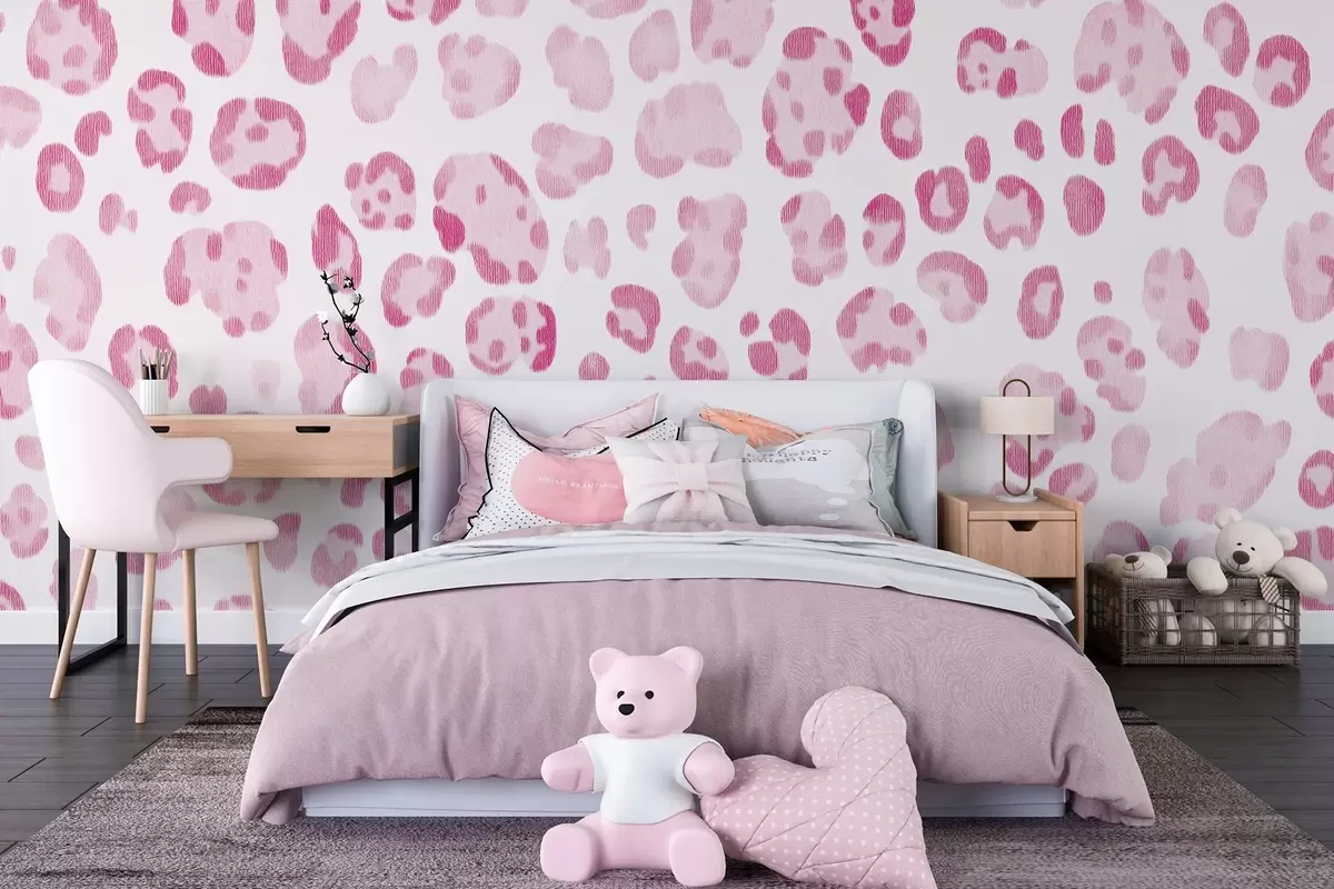 Fotobehang Luipaardprint, woltextuur, roze kleur N° w04112v2