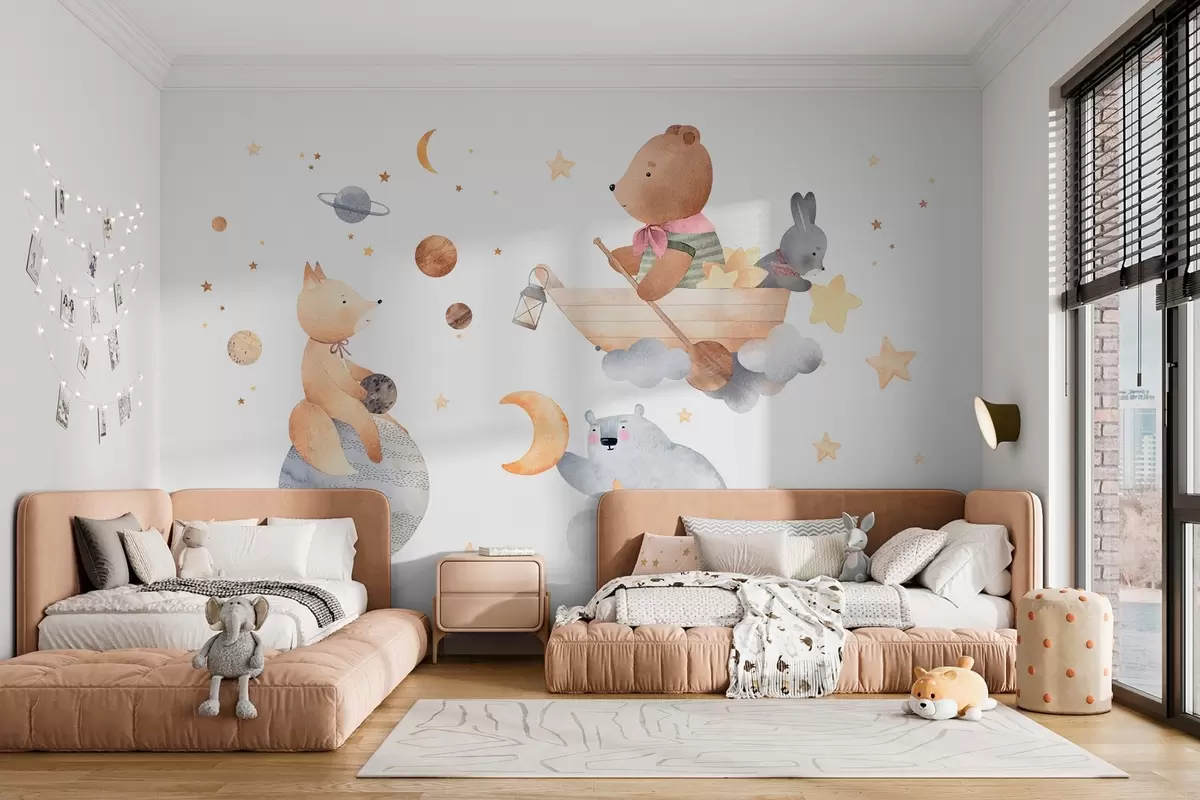 Fotobehang Sprookjesachtige dieren tussen wolken en sterren N° w04123