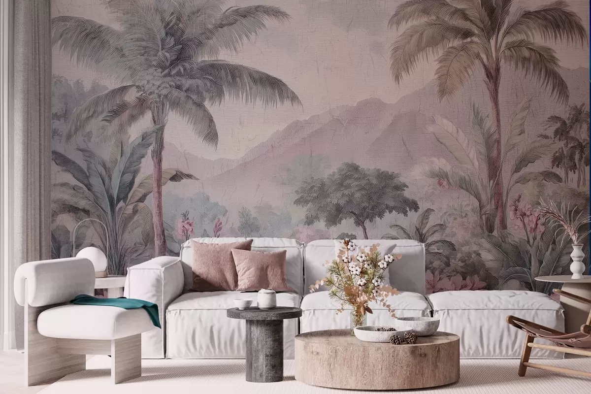 Fotobehang tropisch oerwoud in retrostijl N° w04139