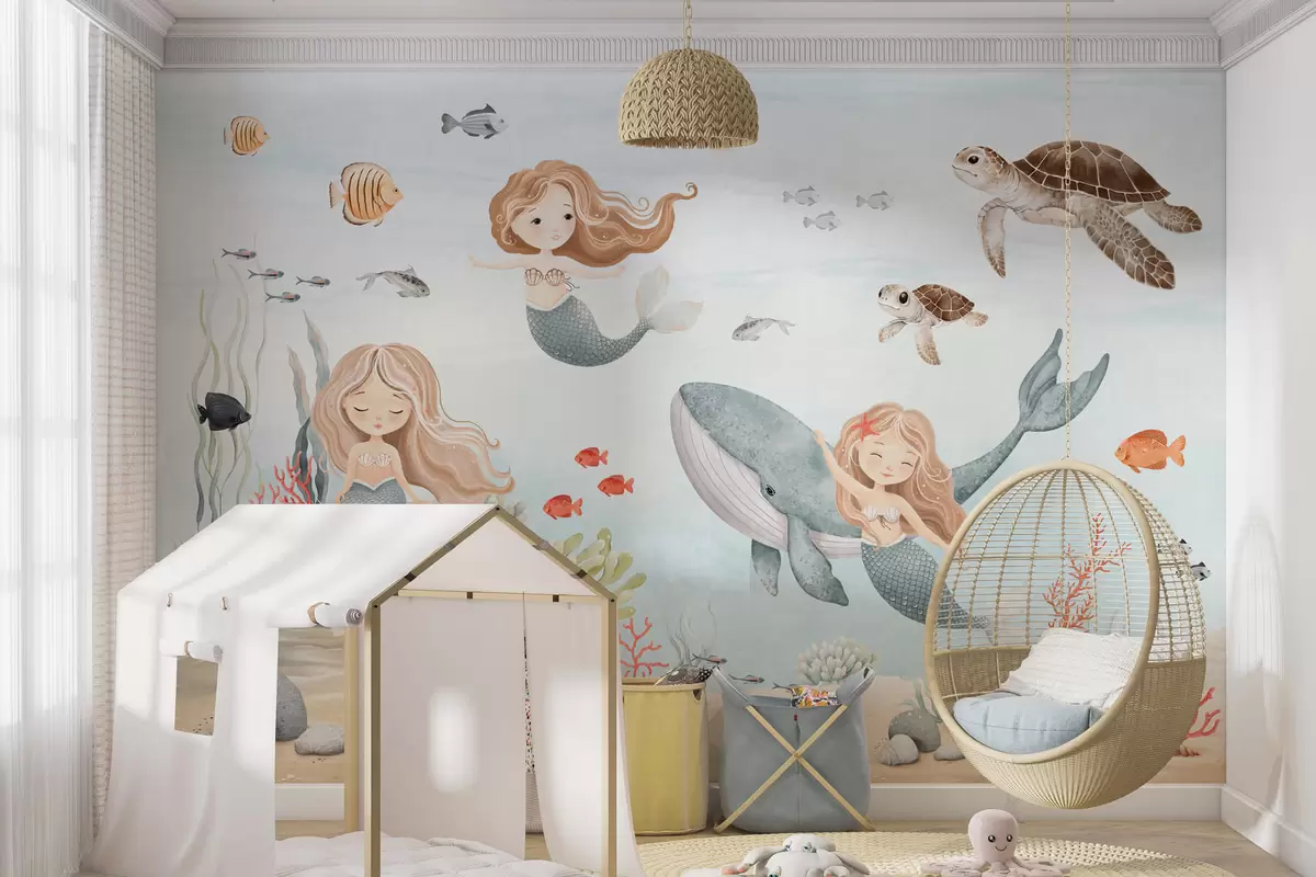 Fotobehang Onderwaterwereld met zeemeerminnen en vissen N° w04166
