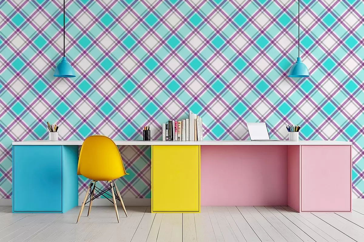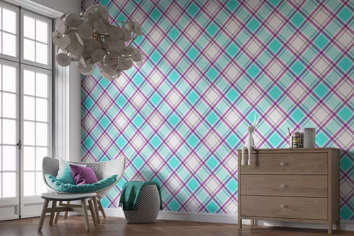Fotobehang geruit patroon in blauwe tinten N° w04167